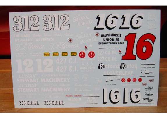 #12/16/312 Bobby Allison Bobby Allison 1960's Sportsman cars. Sheet includes full graphics for the #312 '55 Chevy, #12 '61 Impala and the #16 '64 Chevelle. Use the Lindberg '61 Impala kit for the #12 car. Use teh Big Donkey resin body for the '64 Chevelle. Any Monogram '55 Chevy kit body will work for the #312 car. Some bonus graphics are included for a few other cars including the #16 '57 Chevy. This sheet should be able to build at least 3 complete cars depending on which versions you choose. A fully detailed placement sheet is included.