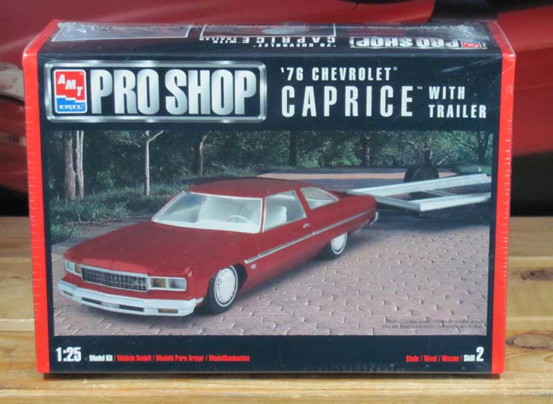 AMT Pro Shop 1976 Chevy Caprice with trailer. Issued in 1999. Kit is Factory Sealed Kit #30031.