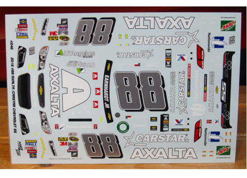#88 Axalta/Carstar Chevy SS driven by Dale Earnhardt Jr and Jeff Gordon in 2016. Sheet includes markings for several cars including the Carstar version raced at Kansas.