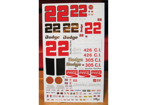 #22 Dodge Charger/Daytona driven by Bobby Allison and Dick Brooks in the 1969-1970 seasons. All new sheet with the most recent updated artwork for the Mario Rossi Chargers. Sheet is printed with the correct gold foil numbers. Includes numerous options for many cars driven by Allison and Brooks.