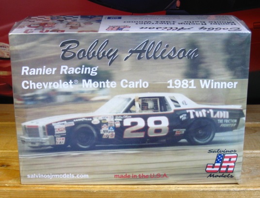 Bobby Allison's #28 Tuflon Monte Carlo 1981 Riverside winner. Last race for the full size cars. Kit includes the new updated front and rear suspension parts along with Powerslide Brand decals. Limited release. Once these are sold there will be no re-issue.