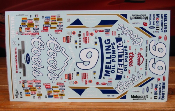 #9 Coors Thunderbird driven by Bill Elliott. Sheet has complete graphics for the cars driven in 1989 and 1990
