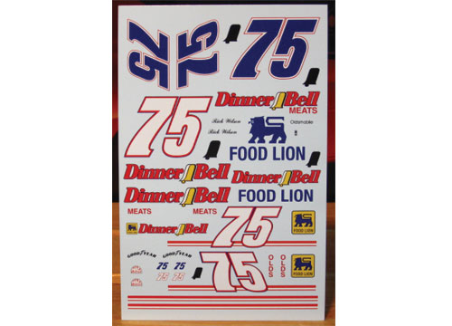 #75 Dinner Bell Oldsmobile driven by Rick Wilson in the 1990 season. Sheet includes early season and late season numbers. Correct contingencies can be found on the new Powerslide 1990s Grouped Contingencies sheet. This is part of the new "Eco" series from the makers of Powerslide. They have the same great artwork, but are made with limited colors to make them more affordable.
