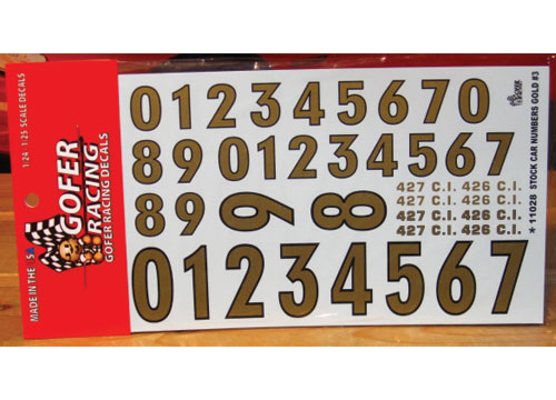 Goodies sheet from Gofer Decals. Assorted Stock Car numbers.