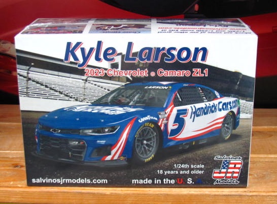 New 2023 Next Gen #5 Hendrick.com Camaro driven by Kyle Larson. All new tooling with highly detailed chassis. Body molded in Hendrick blue, chassis molded in gray and black. For best results white should be painted, but kit comes with optional set of decals so kit can be built without painting if desired.