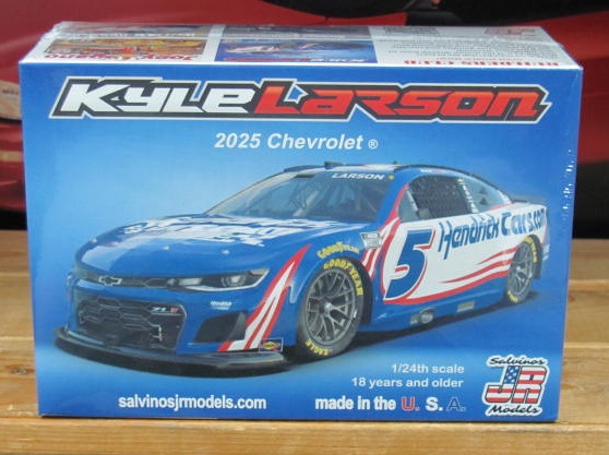 New 2025 Next Gen #5 Hendrick.com Camaro driven by Kyle Larson. All new tooling with highly detailed chassis. Body molded in Hendrick blue, chassis molded in gray and black. For best results white should be painted, but kit comes with optional set of decals so kit can be built without painting if desired.