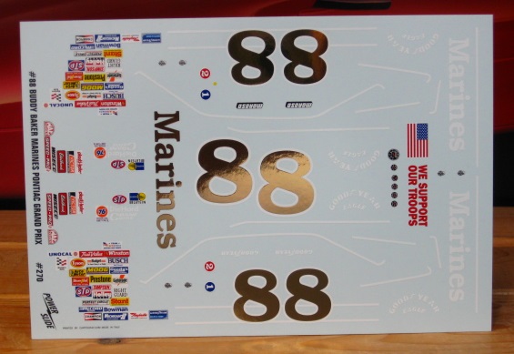 #88 Marines Grand Prix driven by Buddy Baker in the 1991 Daytona 500. Brand new Powerslide sheet includes all the correct race day associate sponsors.