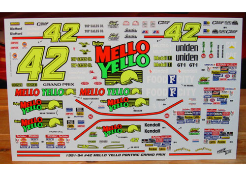 #42 Mello Yello Grand Prix driven by Kyle Petty. Sheet has several options for the 1991 through 1994 cars.