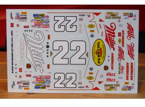 #22 Miller American Buick driven by Bobby Allison in the 1987 season. Sheet is based on the 1987 Daytona Pepsi 400 winner, but also includes some 1986 markings.