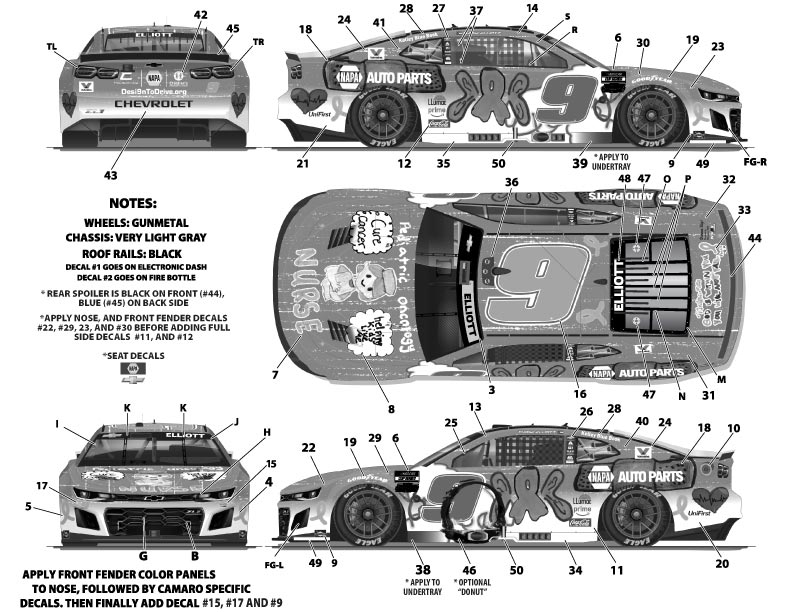 #9 Napa Pediatric Oncology Scheme Camaro 2025 Atlanta Winner driven by Chase Elliott. Camaro headlight sheet will be included. Use Salvino 2022/24 Camaro kit for donor.