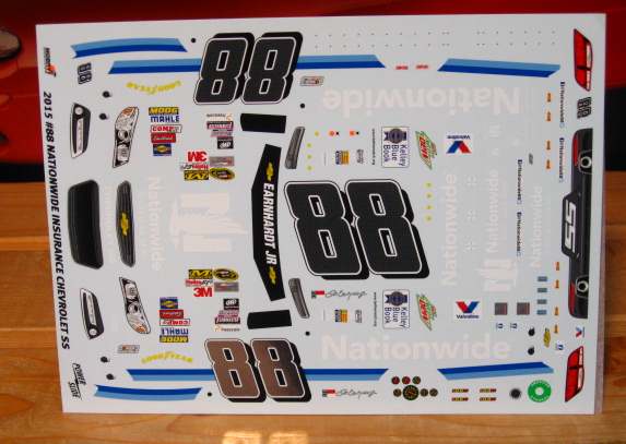 #88 Nationwide Chevy SS driven by Dale Earnhardt Jr in 2014. Another amazing release from Powerslide. Sheet includes correct chrome foil printed numbers with accurate prism pattern. This sheet is based on the 2015 Daytona 500 car and also includes markings for the Talladega winner.