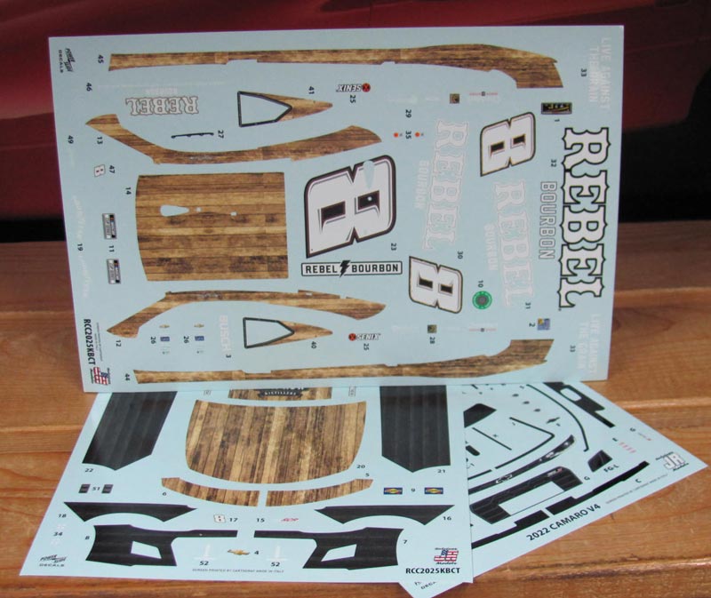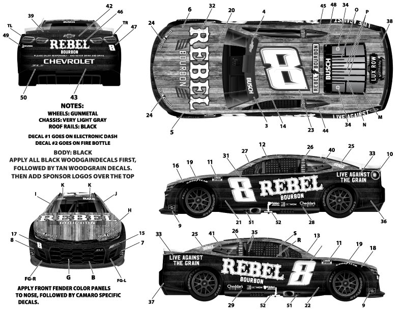 #8 Rebel Bourbon Camaro driven by Kyle Busch. Use Salvino 2024/25 Camaro kit for donor.