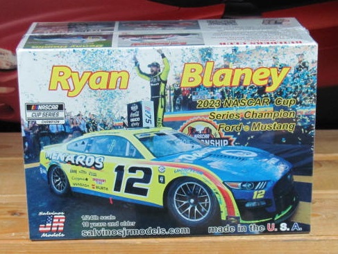 New 2023 #12 Menards Dutch Boy Ford Mustang driven by Ryan Blaney. Kit represents the 2023 Championship Winner from Phoenix. All new tooling with highly detailed chassis. Body molded in yellow, chassis molded in gray and black. Kit is Factory Sealed.