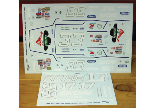 #33 Skoal Monte Carlo driven by Harry Gant in the 1985 season. Usual Powerslide accuracy and detail. Sheet has options for the early season #33 car as well as the late season car with the all green front end. Sheet also has conversion numbers for the #66 and #17 cars.
