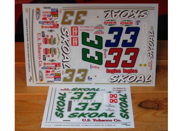 #33 Skoal Monte Carlo driven by Ken Schrader in the 1999 season. Sheet can do either the red, blue, green or gold car from 1999.