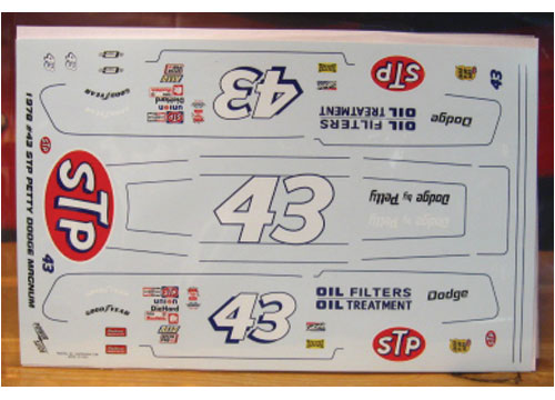 #43 STP Dodge Magnum driven by Richard Petty. Sheet includes blue pinstriping and is made to fit the SMH Magnum resin body