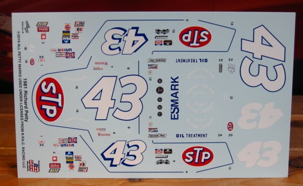 #43 STP Buick driven by Richard Petty. Sheet builds the 1981 Daytona 500 Winner