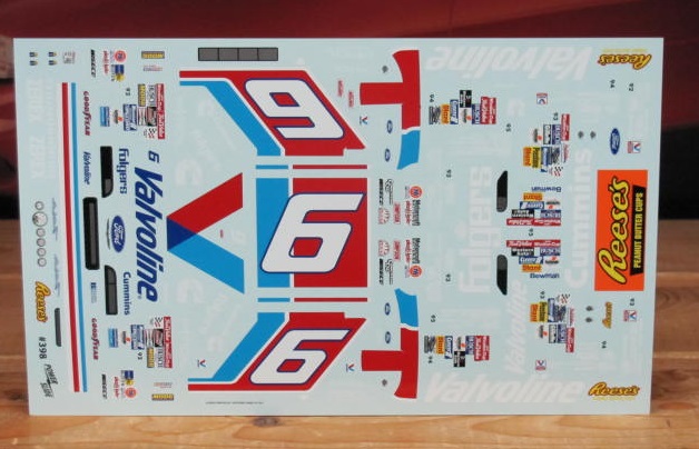 #6 Valvoline Thunderbird driven by Mark Martin. Amazing new sheet has options for the 1992 through 1995 cars. Complete contingency and associate sponsors for all four years!